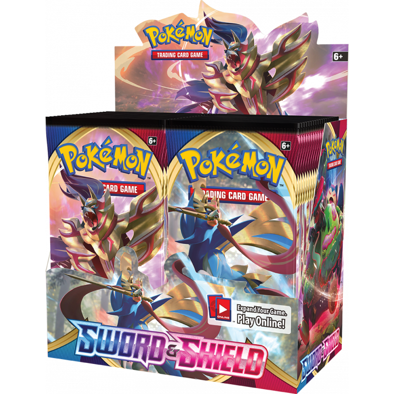 Boîte de Boosters Pokémon Épée et Bouclier : Comprends 36 boosters, contenant chacun 10 cartes et 1 carte énergie basique.