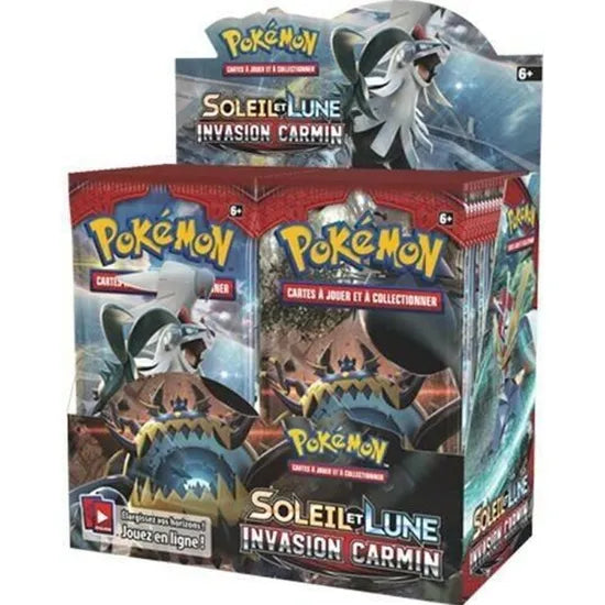 36 boosters Soleil et Lune n°4 = 360 cartes de la série SL4 INVASION CARMINConditionné en Boite de 36 Boosters scellé et neuf Carte Pokemon en version FR.DE.EN.ES boite sous cellophane